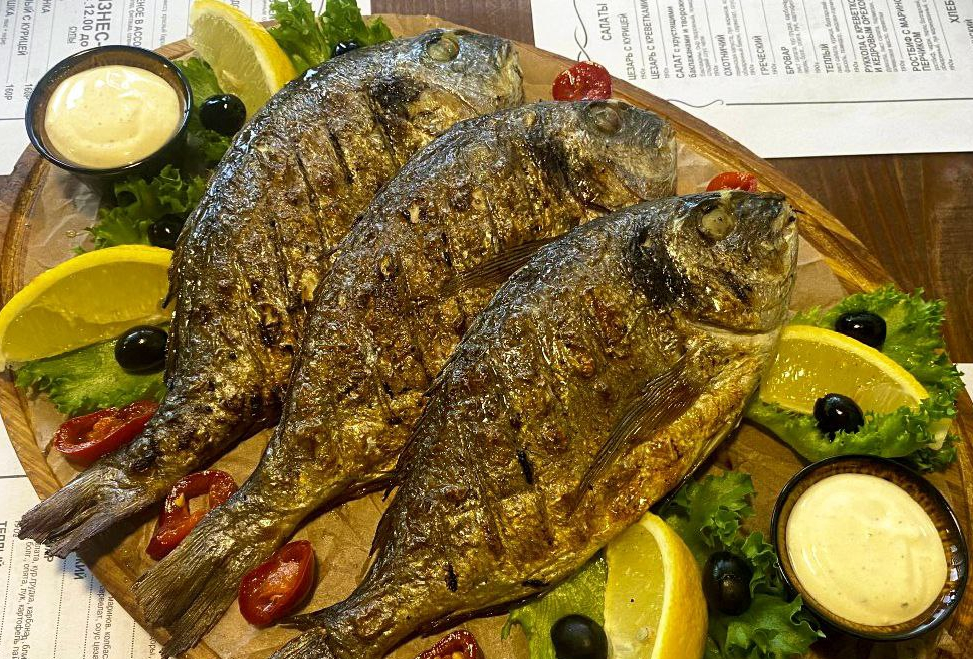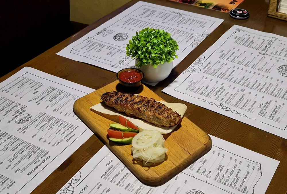 Кебаб, шашлык из свинины и курицы, колбаски 3 вида, шампиньоны, картофель на гриле, помидоры, огурцы, 3 соуса