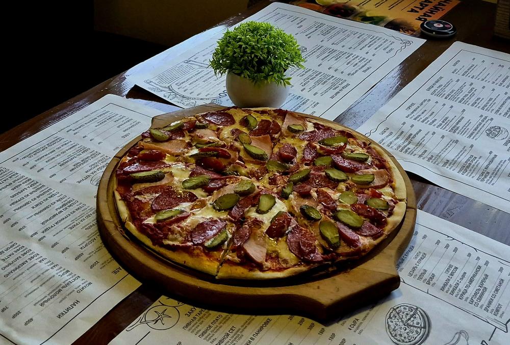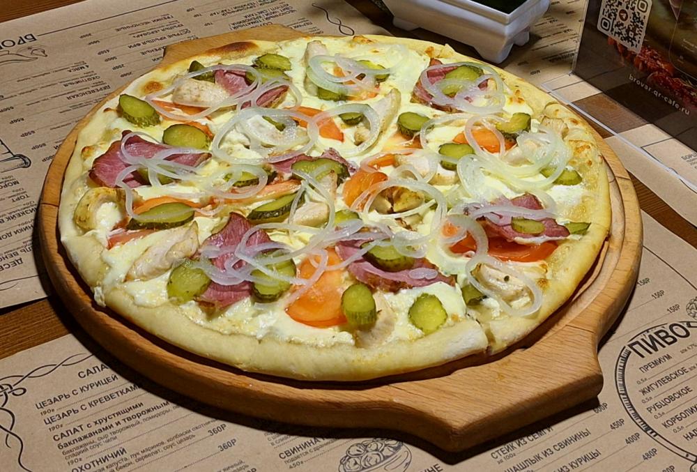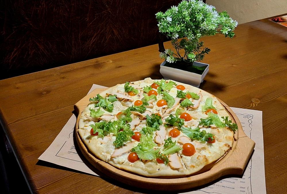 Куриная грудка, карбонад, помидоры, маринованные огурцы и лук, соус цезарь